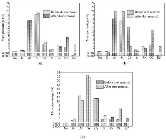 According to the classification method described above, the percentage of the different components contained in fine particles collected before dust removal were calculated, as shown in Figure 6.
