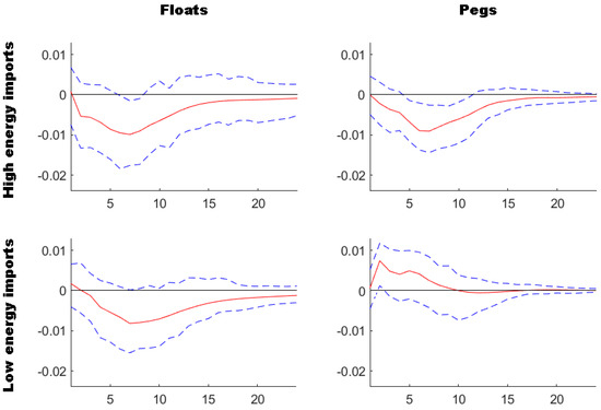 In the final model, we add our second interaction term—the exchange rate regime dummy. The impulse response functions are presented in Figure 3.