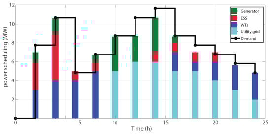 - Talari, S.; Yazdaninejad, M.; Haghifam, M. Stochastic-based scheduling of the microgrid operation in-cluding wind turbines, photovoltaic cells, energy storages and responsive loads. IET Gener. Transm. Distrib. 2015, 9, 1498–1509. [Google Scholar] [CrossRef]