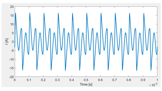 Figure 15b), the transistors are switched when the minimal time of one cycle is reached and the frequency of the current is approximately 20 kHz.