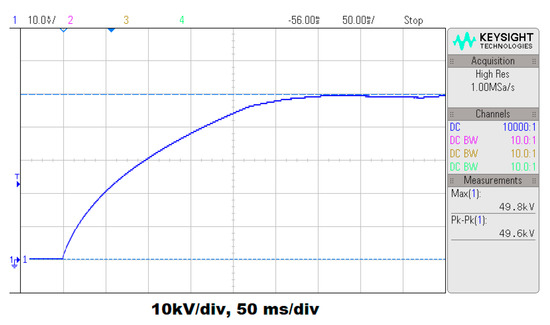 Figure 16), the charging time up to 50 kV is approximately 300 ms. This value is lower than the required 330 ms.