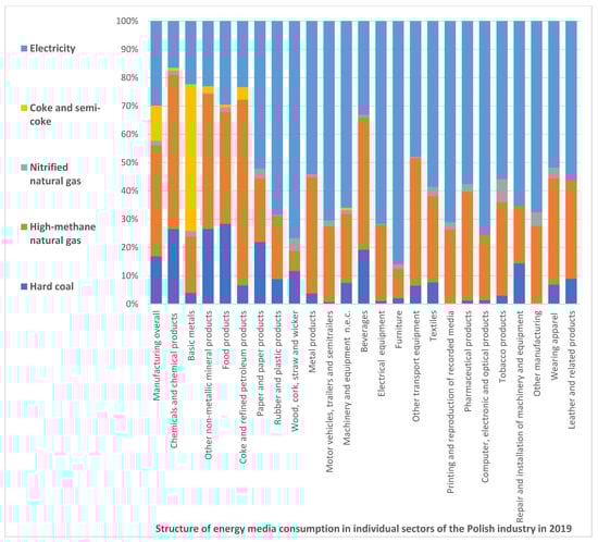 The structure of energy media consumption in individual sectors of the Polish industry in 2019 (own study based on Statistics Poland report [37]).