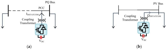 - Sanam, J.; Ganguly, S.; Panda, A.K. Distribution STATCOM with optimal phase angle injection model for reactive power compensation of radial distribution networks. Int. J. Numer. Model. Electron. Netw. Devices Fields 2017, 30, e2240. [Google Scholar] [CrossRef]