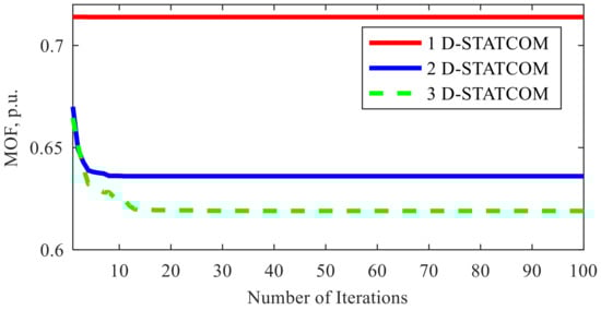 - Dash, S.K.; Mishra, S.; Raut, U.; Abdelaziz, A.Y. Optimal Allocation of DSTATCOM Units in Electric Distribution Network Using Improved Symbiotic Organisms Search Algorithms. In Proceedings of the 2021 International Conference in Advances in Power, Signal, and Information Technology (APSIT), Bhubaneswar, India, 8–10 October 2021; pp. 1–6. [Google Scholar]