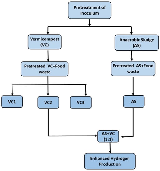 - Pascualone, M.J.; Costa, M.B.G.; Dalmasso, P.R. Fermentative Biohydrogen Production from a Novel Combination of Vermicompost as Inoculum and Mild Heat-Pretreated Fruit and Vegetable Waste. Biofuel Res. J. 2019, 6, 1046–1053. [Google Scholar] [CrossRef]