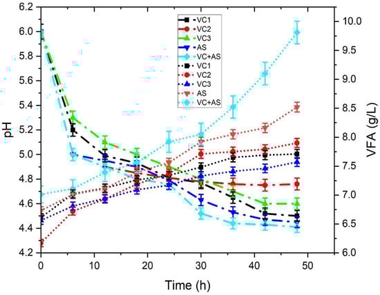 - Zhou, M.; Yan, B.; Wong, J.W.C.; Zhang, Y. Enhanced Volatile Fatty Acids Production from Anaerobic Fermentation of Food Waste: A Mini-Review Focusing on Acidogenic Metabolic Pathways. Bioresour. Technol. 2018, 248, 68–78. [Google Scholar] [CrossRef]