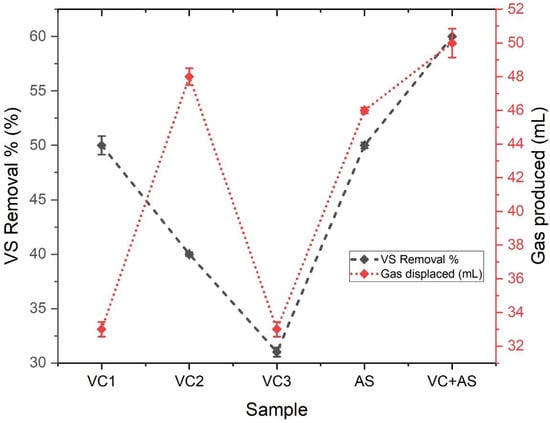 | 2 | Vegetable waste | Acid-treated anaerobic sludge | 89 mL/g COD | 65% | [63] |