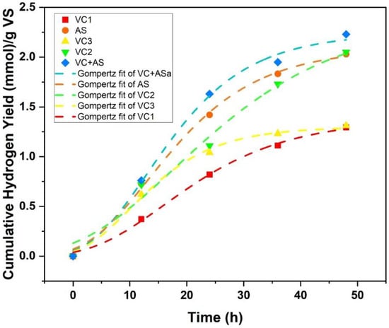 Chicago/Turabian StyleKarthikeyan, Balakumar, and Velvizhi Gokuladoss. 2022. "Fusion of Vermicompost and Sewage Sludge as Dark Fermentative Biocatalyst for Biohydrogen Production: A Kinetic Study" Energies 15, no. 19: 6917. https://doi.org/10.3390/en15196917