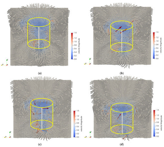 Then, is obtained from Equations (1) and (3) with iteration steps. More details, such as the iteration steps and the convection of vortex elements, can be found in the references [26] and [27].