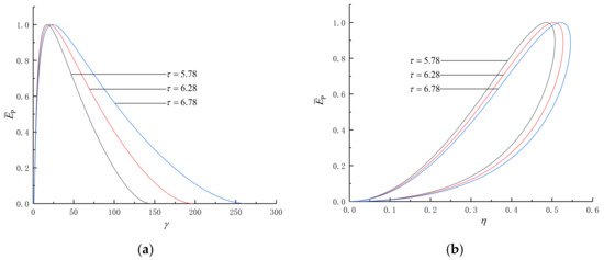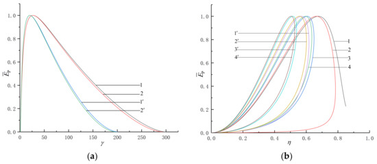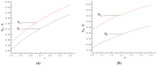 Figure 5 shows the influences of and on and . As can be seen from the Figure 5a,b, no matter how and change, is always greater than .