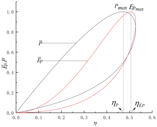 - Under specified conditions of different parameters, thermal efficiencies under the conditions of maximum efficient power and maximum power output are 50.45% and 47.05%, respectively. The latter is about 7.22% higher than the former.