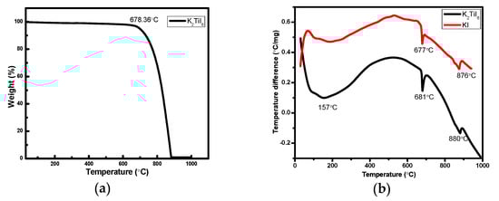 (a) Thermogravimetric analysis of K2TiI6; (b) Differential thermal analysis of K2TiI6 and KI.