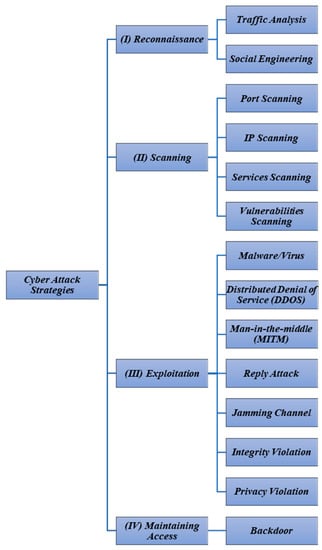 - Abdullahi, M.; Baashar, Y.; Alhussian, H.; Alwadain, A.; Aziz, N.; Capretz, L.F.; Abdulkadir, S.J. Detecting Cybersecurity Attacks in Internet of Things Using Artificial Intelligence Methods: A Systematic Literature Review. Electronics 2022, 11, 198. [Google Scholar] [CrossRef]