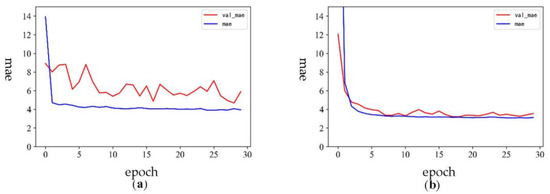The loss function is used to estimate the error between the predicted value () and the real value ). It is a non-negative real-value function usually expressed by L(Y, f(x)). The small value of the loss function indicates the more robustness of the model. The loss functions used for regression are mainly MAE and MSE. Because the relationship between MAE loss and the absolute error is linear, while the relation between MSE loss and error is square, when the error is large, MSE loss will be far greater than MAE loss. Therefore, when an abnormal value with a large error appears in the data, MSE will produce a very large loss, adversely influencing the model training. The logging data is still subject to acquisition noise even after the previous data cleaning and correction [74,75,76], so the MAE loss function was adopted, as shown in Equation (4).