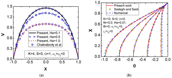 - Ranjit, N.K.; Shit, G. Entropy generation on electromagnetohydrodynamic flow through a porous asymmetric micro-channel. Eur. J. Mech.-B/Fluids 2019, 77, 135–147. [Google Scholar] [CrossRef]