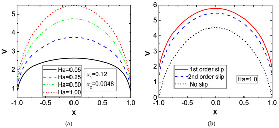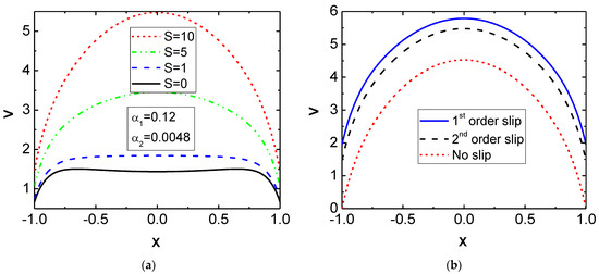 where α1 is a dimensionless slip parameter, V is a dimensionless slip speed, and X is a dimensionless coordinate normal to the wall surface shown in Figure 3a. Poisson suggested the temperature jump similar to Equation (3) as: