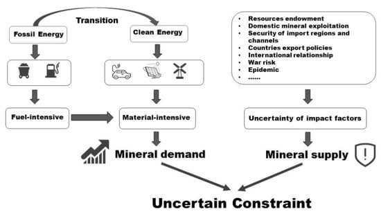 The current application of clean energy technologies globally is still in its infancy. With the continuous development of clean energy technology, primary mineral resources will play a more significant role in clean energy technology in the future. With the pace of energy technology progress, the supply of mineral materials and critical metals for the transition of global energy system is a growing concern. Studies on mineral resources and energy development in the early literature were primarily regulated in reporting the lifecycle and investment of energy. Sherwani et al. [12] reviewed solar PV power systems’ lifecycle assessment. In 2011, Graedel [13] discussed the availability of energy-related metals and clarified that the application of advanced energy technology will require some critical materials and these materials often lack efficient substitutes. Valero et al. [14] summarized data regarding which elements are used in each clean technology under a top-down approach and in what amounts. In recent years, some researchers have reviewed the resource requirements of specific low-carbon technologies such as wind power [15] and solar PV [16]. Darina et al. [17] gave a quantitative indication of the EU’s resilience regarding the supply of materials relevant for the deployment of low-carbon energy and transport technologies.