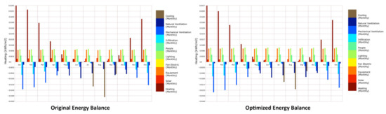 Energy balance comparison of the original (above) and the optimized (below) models.