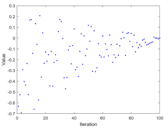 Similar to other algorithms, WOA also has the phenomenon of inconsistency between global search ability and local development ability when solving problems. The convergence factor a has a great influence on parameter A, which is very important for the adjustment of the algorithm’s global search ability and local development ability. In the original algorithm, as the number of iterations increases, the convergence factor decreases linearly from 2 to 0. This linear change in the convergence factor cannot adjust well the global exploration and local development capabilities of the algorithm. In order to make the algorithm maintain the diversity of the population and jump out of the local optimal solution in time, a nonlinearly changing convergence factor is proposed, such as Equation (17).