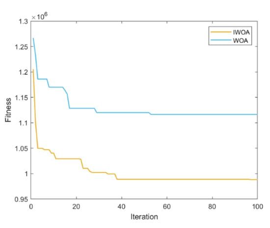 To test the optimization performance of the algorithm in solving practical problems, in this section, the convergence speed and solution accuracy of IWOA in solving the charging station location optimization model considering the cost problem are studied.