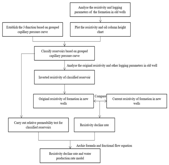 The resistivity is directly related to the water saturation, and the oil column height is the reflection of the capillary pressure. The J-functions of grouped capillary pressure curves are applied to the resistivity vs. oil column height crossplot to realize the classification of reservoirs with an unclear porosity–permeability relationship. Oil column height and GR are the key controls on the initial resistivity of the reservoirs in the study area. The initial resistivity can be reconstructed by using the multiple regression method. The relative permeability test is performed for the reservoirs. For each class of reservoirs, the relationship between water cut and resistivity decline rate is established, and the water-flooding intensity is finely divided. This method can help improve the accuracy of the quantitative evaluation of water-flooded zones.