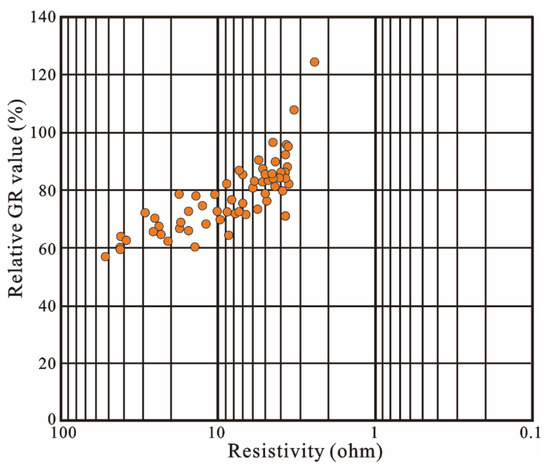 Crossplots of resistivity and relative GR value of P Formation reservoirs.