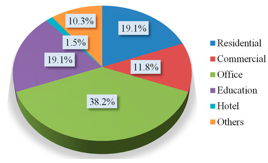 Proportion of LVDC buildings in different categories.