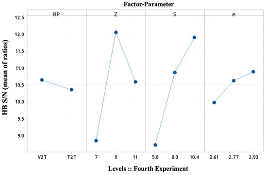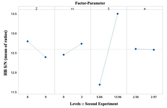 In addition, this screening case has mixed geometrical basic parameters to define the trochoidal gear set, such as Z, e, S, and external gear rc, with working functions, such as SK and RP, where the former shows less dominance than the latter, and it will be discarded. Owing to the higher effect of the level ‘Yes’ in the shaft keyway, which is closer to real working function, all the gear sets in the incoming Taguchi experiments have a shaft keyway.