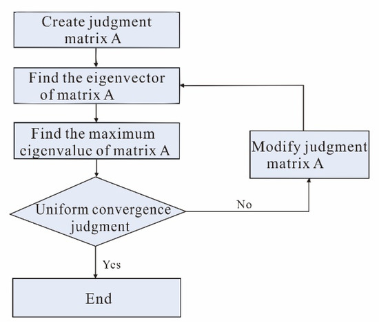 The Analytic Hierarchy Process (AHP) is a multilevel weighting analysis method proposed in the 1980s [1] for multi-objective, multi-criteria, multi-factor, multi-level unstructured complex decision problems [2]. AHP can transform complex correlations into quantitative analysis [3]. The basic principle of AHP is that the problem can be decomposed into different constituent factors based on the nature of the problem and the overall goal to be achieved, and the factors are assembled and combined at different levels based on their interrelated influence and affiliation, forming a multi-level analysis structure model. Finally, defining the proportional relevance or ranking of the respective qualities of the lowest level (options, measures, etc., for decision) in relation to the highest level (overall goal) is the crux of the problem [4,5,6].