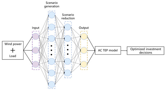A Scenario analysis is a common method to describe TEP problems considering uncertainty and randomness. In order to guarantee the security and stability of a power system, a scenario analysis has been widely applied to address the uncertainties brought by RESs and load fluctuations, which can be considered a significant aspect of TEP.