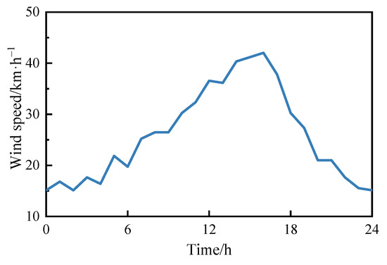 Wind speed is an important parameter, serving as the input of the wind turbine. The distribution of the typical wind speed per hour for one day collected from [47] is shown in Figure 4, which was taken as the input of the Weibull distribution function for the scenario generation.