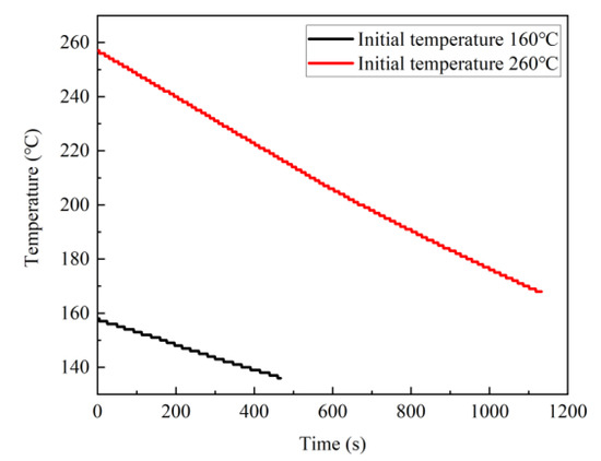 Oil shale temperature changes with the initial temperatures of 160 °C and 260 °C.