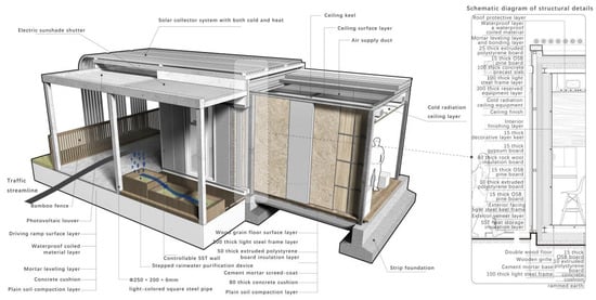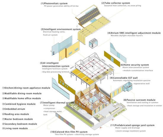 | Plane layout of functional area | Arrangement of modifiable modules, division of modules | Indoor structure | Energy-saving-oriented layout, improved living comfort, modular design that facilitating construction | |