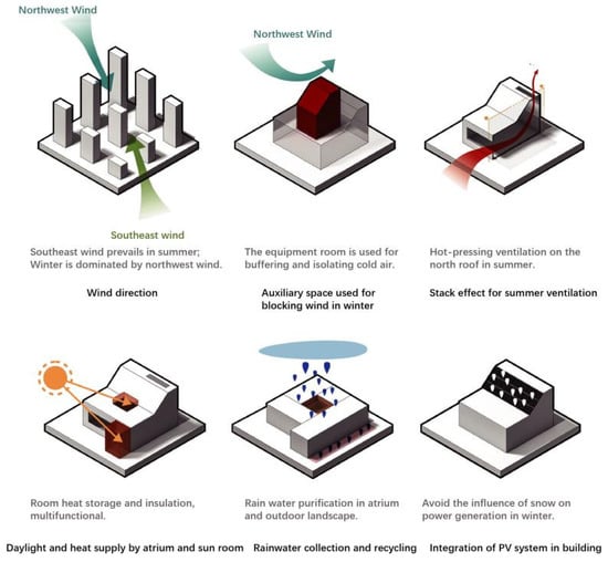 | Performance based design | Performance, air tightness and window/wall ratio of envelope structure | Structure | Reducing heat load per unit area, reducing energy consumption and exhibiting local geographical features |