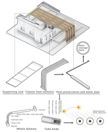 | Energy and power engineering | Thermal system | 15 | Tubular heat collector for cooling and heating | Horizontally on the roof in the east-west direction. |