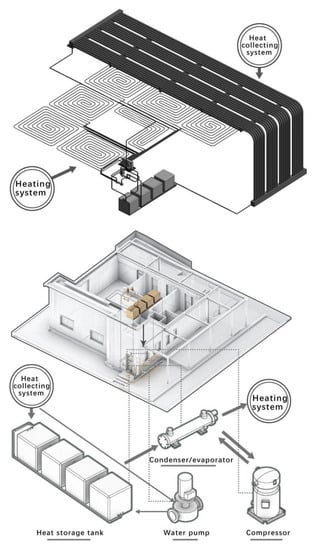 | Collector system | 4 | Water pipe of heat collector | In the interlayer of the ceiling (to reduce heat loss) | |
