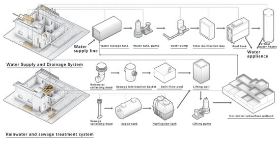 | Environmental engineering | Water treatment system | Photovoltaic panel cleaning, rainwater/sewage treatment system, water supply/drainage system | Interior design Electrical engineering Energy and Power | Reduce emissions and energy consumption |