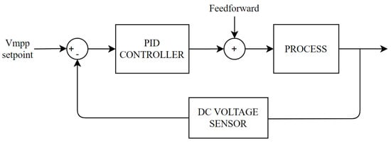 The VFD performs a proportional-integral-derivative (PID) control [] that must keep the system operating stably on a prefixed supply voltage, that usually coincides with the maximum power point (control variable), by varying the frequency pump operation (output variable) [].