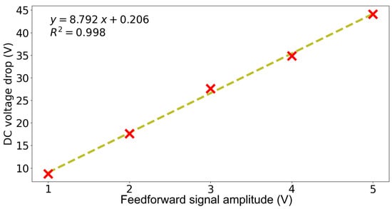 To change the amplitude of the feedforward signal, it is necessary to multiply it by a constant. This way, the amplitude of the feedforward signal will be proportional to the disturbance it produces on the system voltage (see Section 3.1 for more details).
