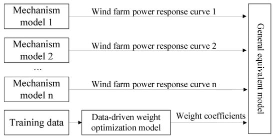 To address the two issues, the framework of the model-data-driven general equivalent modeling method for DFIG-based WFs is shown in Figure 1, which includes selecting the mechanism model, setting the weight coefficients, and constructing the training database.