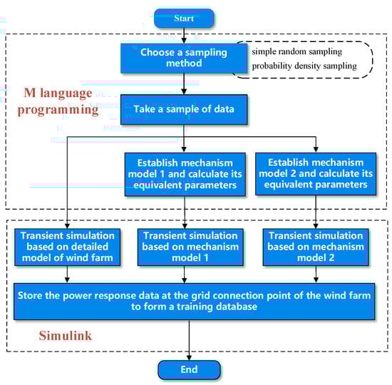 Taking the large capacity of data samples into account, we adopted the MATLAB 2020b platform to carry out numerical simulations using m-language programming and Simulink to call each other. The simulation results were automatically stored and called for the adaptive weight optimization model based on the PSO algorithm. The specific flow is shown in Figure 2.