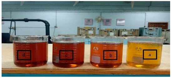 WCO was collected from a nearby well-reputed restaurant to be used in our tests. In order to reduce the viscosity of the WCO, an additive named n-pentanol was found through a detailed literature survey. The blend samples were then sent to a university laboratory for characterization. The WCO had been principally utilized for frying activities in a temperature range of 130 and 180 °C. Prior to mixing, the oil was strained and warmed to eliminate any foodstuff and water dribbles. This was necessary to modify the strength of the mixtures, because diesel is water-abhorrent, and the occurrence of water may cause phase separation over a cycle of time. In order to filter WCO a 4 µm filter was used. Each test fuel blend (% vol) was prepared before the engine was fueled for operation. In this respect, all fuel components were mixed using the splash blending method, by employing a mechanical homogenizer machine for 30 min at 4000 rpm. Three mixtures were formed: (1) D95-WCO5 (95%vol. diesel, WCO5%vol. waste cooking oil, (2) D65-WCO20-Pe15 (65%vol. diesel, 20%vol. waste cooking oil, and 15%vol. n-pentanol) and (3) D60-WCO20-Pe20 (60%vol. diesel, 20%vol. waste cooking oil and 20%voil. n-pentanol). No surfactants, cetane refiners or cleaners were mixed in. Figure 1 represents the physical posture of the composites.