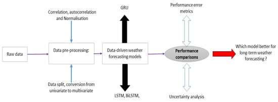 The rest of this paper is organised as follows. First, weather data and its pre-processing are described; then, the data-driven model’s methodologies for long-term weather forecasting are proposed. Thereafter, performance comparison is conducted with existing techniques to find out the most effective model and summarising strengths and weaknesses of the models. Finally, the paperwork finishes by outlining conclusions and discussion together with possible future directions.