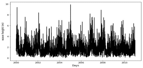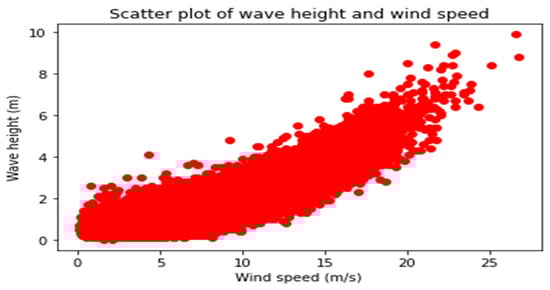 Figure 3 and Figure 4 demonstrate the three-hourly time-series data points of wind speeds and wave heights from 1992 to 2016 (10 years) representing high variability. For the sake of simplicity, time series plotted for sample datasets are shown in Figure 5 and Figure 6, respectively. Furthermore, by looking at these two parameters closely, we found that they are closely correlated to each other, which is expected. This is further confirmed by the wave height and wind speed scatter plot as shown in Figure 5.