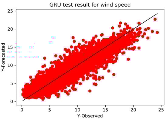 Detailed methodologies of the GRU can be found in [] and used to develop weather forecasting models based on filtered datasets described in Section 2 and results are shown in Figure 19 and Figure 20, respectively. Furthermore, model error analysis (as shown in Figure 21 and Figure 22) suggests that the GRU is able to forecast wind speed and wave height which follows the trends similar to measured datasets.