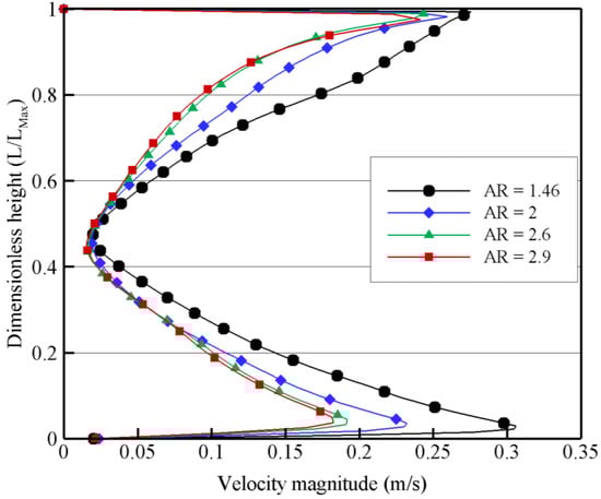 Local velocity at θ = 30° for different aspect ratios.