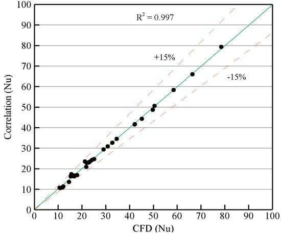Figure 16 shows that within the range of Rayleigh numbers examined (typical of a solar still), there is a good relationship between the CFD results and the predicted values from the proposed correlation (less than 15% difference). This suggests that the Equation (3) is well suited for use in predicting the heat transfer coefficient for a wide range of geometries.