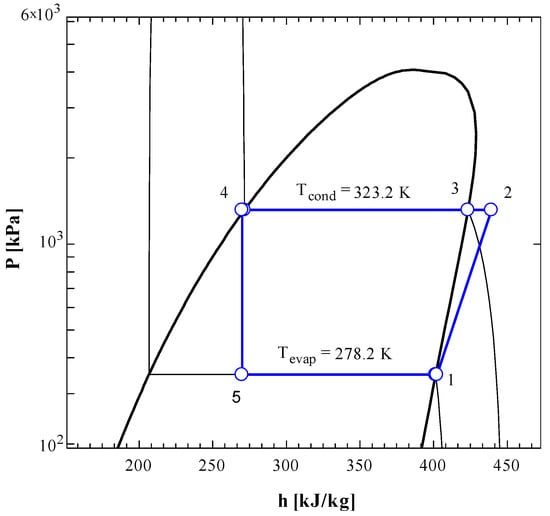 The amount of cooling produced in the evaporator is called cooling capacity [32,33] and is given by Equation (1):