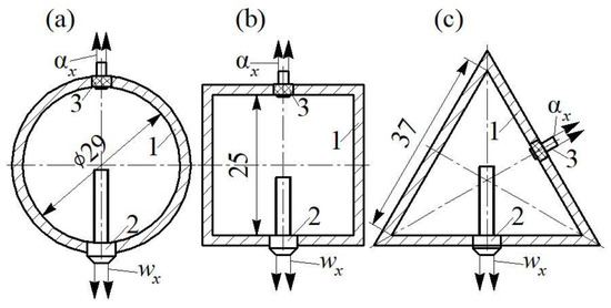 Pipe cross-sections with main dimensions and sensor installation locations: (a) round; (b) square; (c) equiangular triangle.