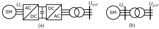 (a) Generator connected with an inverter (b) Generator with a synchronous grid connection.